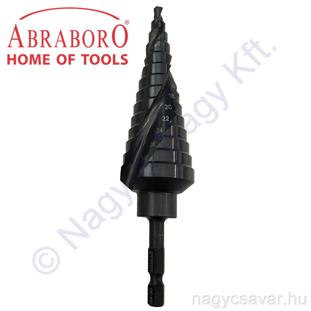 Lépcsős fúró HSS-TiAlN 4-30mm-ig 2mm/lépcsó 115mm ABRABORO