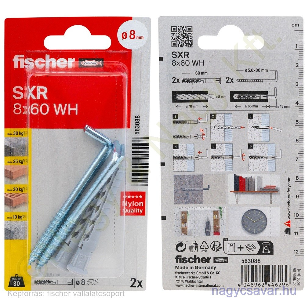 Az SXR rögzítődübel kiváló minőségű nylonból készül. A különleges geometriai kialakításának köszönhetően az SXR alkalmazható tömör és üreges építőanyagba is. A kis 50 mm-es rögzítési mélységének köszönhetően a rögzítés költséghatékony. A kis furatmélységgel idő és energia takarítható meg. Az SXR kampóval főként képek, szekrények, képek rögzítéséhez alkalmazható.