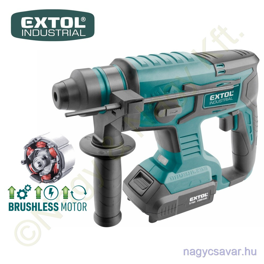 | Rövid leírás a termékről | Az akkumulátoros fúrókalapácsot téglák és beton gyors fúrására tervezték SDS plus szárral ellátott fúrók segítségével. A kalapácsot a legmodernebb "kefe nélküli" motor hajtja. Ez az új motortípus hosszabb élettartammal rendelkezik, erősebb és kevesebb energiát fogyaszt, mint a hagyományos szénkefe motorok. Az erős pneumatikus kalapácsrendszernek köszönhetően sokkal gyorsabban és hatékonyabban tud fúrni, mint a többi fúrókalapács. Vésőrögzítővel rendelkezik, így a vésést a vésés előtt a megfelelő pozícióba állíthatja, és a kalapács vésés közben ebben a pozícióban tartja a vésőt. Legfőbb előnye az akkumulátoros meghajtás, amely lehetővé teszi, hogy a ütvefúrót bárhová magával vigye, ahol dolgoznia kell. Hátrameneti mechanizmussal van felszerelve az elakadt fúrószár egyszerű kihúzásához. A fordulatszám állítható, amely a fúrandó anyagtól függően használja. Az integrált LED-es világítás késleltetett kikapcsolással rendelkezik, néhány másodperccel a ütvefúró kikapcsolása után még világít. Egy vagy kettő 2000mAh-s akku is elegendő normál munkához, melyeket gyorstöltőben gyorsan feltölthet, igényesebb vagy hosszabb munkához ajánljuk nagyobb akkumulátort 4000–8000mAh kapacitással. Az akkumulátor az EXTOL SHARE20V sorozat minden típusú szerszámában használható. Az alkalmazott Li-ion technológiának köszönhetően bármikor újratölthető anélkül, hogy csökkentené a kapacitását. A Li-ion akkumulátor nagyon lassan veszít energiát, feltöltve és használatra készen sokáig.