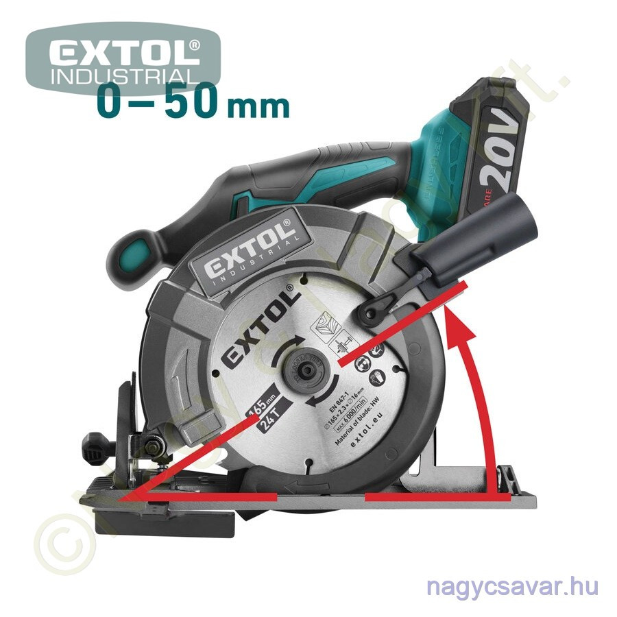 | Rövid leírás a termékről | A szénkefe nélküli körfűrészt úgy tervezték, hogy hatékony és egyszerű vágást biztosítson a felhasználók számára különféle víz-, elektromos, keretezési, befejező és asztalos munkákhoz. A legmodernebb, 3650 ford./perc fordulatszámú, kefe nélküli motorral meghajtott fűrész segítségével a felhasználók gyorsan és egyszerűen vághatnak kemény anyagokat. Ez az új motortípus hosszabb élettartammal rendelkezik, erősebb és kisebb az energiafogyasztása, mint a hagyományos szénkefe motoroknak. A felső és alsó fém védőburkolat kiváló pengevédelmet nyújt esés esetén. A puha gumi markolat ergonomikus kialakítású, hogy kiváló kényelmet és egyensúlyt biztosítson a felhasználók számára. Egy vagy két 2000 mAh-s akkumulátor elegendő a normál munkához, amelyet gyorsan feltölthet egy gyorstöltőben, nagyobb igénybevételhez vagy hosszabb munkavégzéshez nagyobb, 4000–8000mAh kapacitású akkumulátorokat ajánlunk. Az akkumulátor minden típusú szerszámban használható EXTOL SHARE20V sorozat.Az alkalmazott Li-ion technológiának köszönhetően bármikor újratölthető anélkül, hogy kapacitása csökkenne. A Li-ion akkumulátor nagyon lassan veszít energiát és sokáig bírja feltöltve és használatra készen.