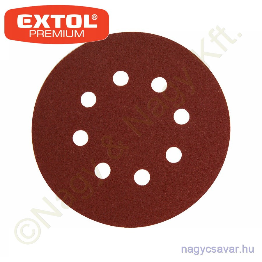 Excenter csiszoló vászon, tépőzáras, Ø125mm 8 lyuk P80 10db EXTOL Prémium