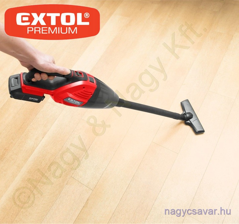 | Rövid leírás a termékről | A vezeték nélküli porszívót száraz porszívózásra tervezték kisebb takarítási munkákhoz otthoni vagy autóban való munkavégzéshez. A készülékhez tartozik egy padlófúvóka és egy hosszabbító szívócső a padló porszívózásához, egy kefefej, egy keskeny fúvóka és egy rugalmas tömlő. A porzsák nélküli kialakításnak köszönhetően nincs szükség porzsákok újra vásárlására. A portartály egy gombnyomással könnyen levehető a porszívótestről, a tartály ezután egyszerűen kiüríthető és visszatehető. Kapacitása elegendő a kisebb, rendszeres tisztításhoz. A szűrés a porszívó fontos része: a porszívó hálózati előszűrővel és nagy szűrési hatékonyságú HEPA finom szűrővel rendelkezik. A hálózati előszűrő megvédi a finom HEPA-szűrőt a durva por és a nagyobb részecskék eltömődésétől. Magas szűrési hatékonyságának köszönhetően ez a szűrő különösen alkalmas az allergiások számára. Az eltömődött HEPA-szűrő, a hálós előszűrő vagy a portartály egyaránt folyó vízzel kimosható. A mellékelt tömlő kiváló, ha szűk helyen (pl. autóban) kell porszívózni, segítségével mindenhová eljuthat. Normál munkához egy-két 2000mAh-s akkumulátor is elegendő, melyeket gyorstöltőben gyorsan feltölthet, igényesebb vagy hosszabb munkához nagyobb, 4000-8000mAh kapacitású akkumulátorokat ajánlunk. Az akkumulátor töltésjelzővel rendelkezik, és az EXTOL SHARE20V sorozat minden típusú szerszámában használható. Az alkalmazott Li-ion technológiának köszönhetően bármikor újratölthető anélkül, hogy csökkentené a kapacitását. A Li-ion akkumulátor nagyon lassan veszít energiát az önkisülés miatt, és sokáig töltve marad és használatra kész.