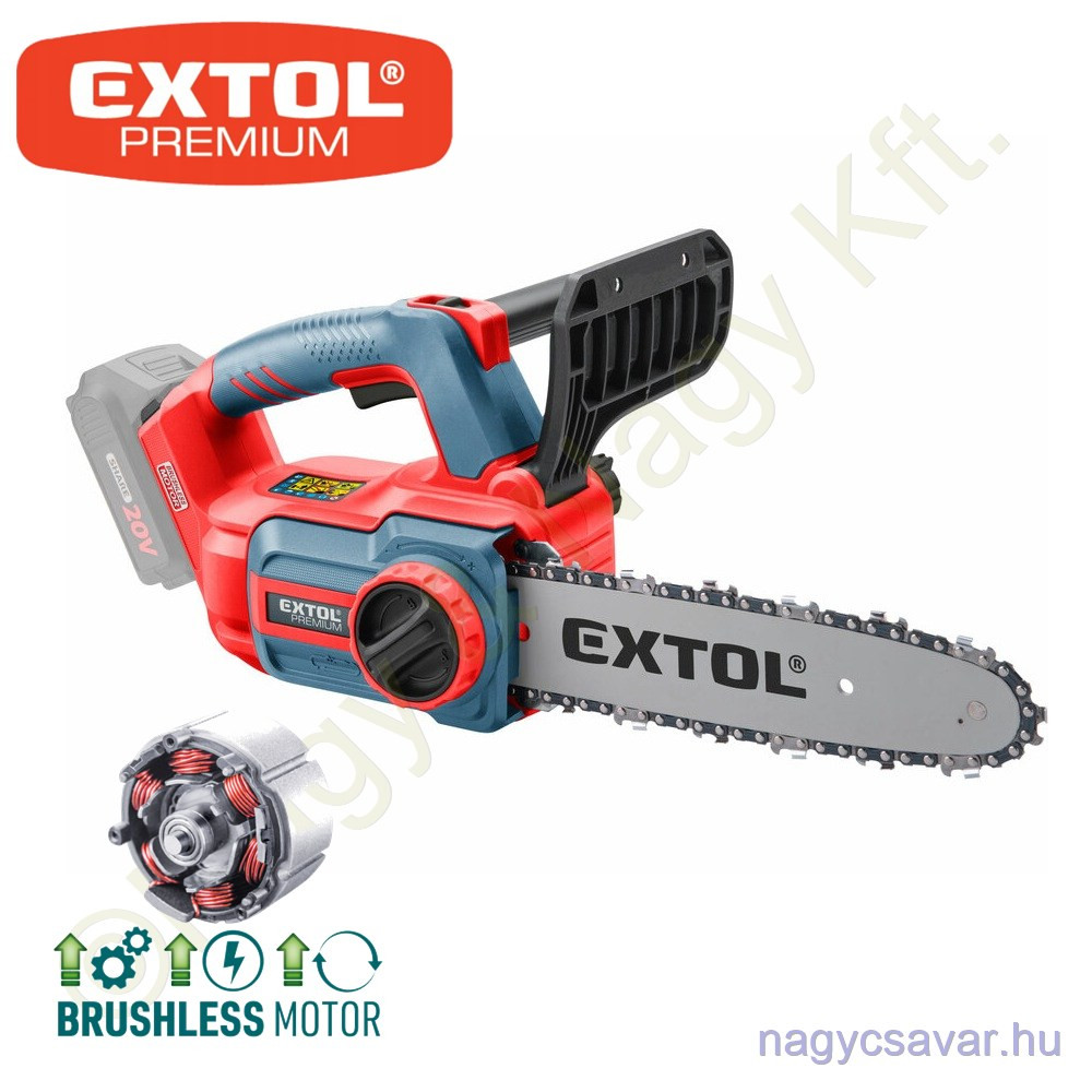 | Rövid leírás a termékről | Az akkus láncfűrésszel fákat lehet kivágni, ágakat és gallyakat lehet levágni, tűzifát lehet előkészíteni, farönköket, deszkákat vagy gerendákat lehet darabolni. A láncfűrészt kertekben, és ház körüli munkákhoz lehet használni. A modern szénkefe nélküli (BRUSHLESS) motor biztosítja a nagyobb teljesítmény leadást, miközben kevesebb energiát használ fel mint a szénkefés motor, az akkumulátorral több munka végezhető el, illetve az ilyen motor élettartama is hosszabb. A készülék kisebb tömege és kisebb méretei, valamint a hálózati vezeték hiánya garantálja a komfortosabb munkavégzést. Az akkus láncfűrész a SHARE20V család tagja. 1 akku több gép. Elég egyetlen akku és az összes gépet tudja használni!