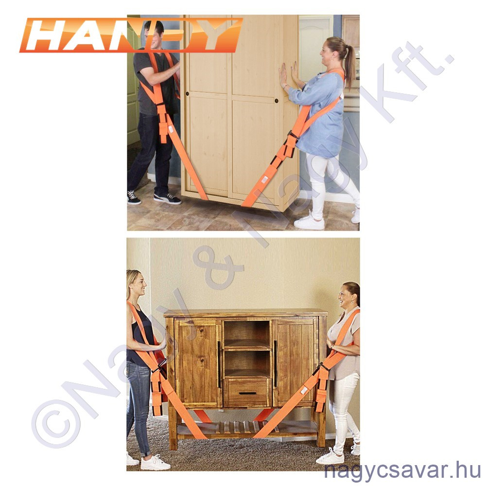 | Rövid leírás a termékről | Kímélje derekát ennek a hevedernek a használatával. Nem szükséges lehajolnia, felemelnie nehéz bútorokat, dobozokat, háztartási nagygépeket például költözés, felújítás során. A szett tartalmaz kettő darab hátra vehető hevedert, melyek segítenek az emelés terhét egyenletesen elosztani, ezáltal nem erőlteti meg karját, derekát, vállát, valamint tartalmaz 2 db nagyméretű, csuklópánttal ellátott hevedert, mely a bútor alá fűzve segít az emelésben. Ideális lehet bármilyen anyagú tárgy felemelésére legyen az: műanyag, fa, vas, stb.